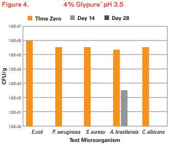 Beurteilen Sie die konservierende Wirksamkeit von Glypure™ in Formulierungen mit Konzentrationen von 1–8 % und pH 3,5–4,2.