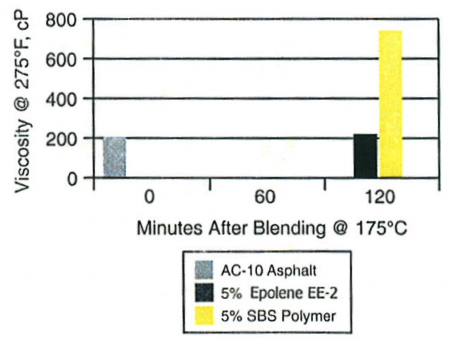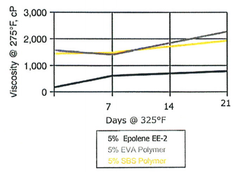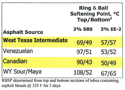 Se utilizan diversos aditivos químicos y poliméricos para mejorar el rendimiento del asfalto. En general, los modificadores poliméricos son el tipo más común de aditivo para asfalto. Los modificadores poliméricos para asfalto se dividen en dos categorías: elastómeros y plastómeros. Los elastómeros comúnmente utilizados para modificar el asfalto incluyen los copolímeros de bloque de estireno-butadieno y estireno-butadieno-estireno (SBS). Los plastómeros comunes utilizados como aditivos para asfalto son el etileno-acetato de vinilo (EVA) y el polietileno de baja densidad.