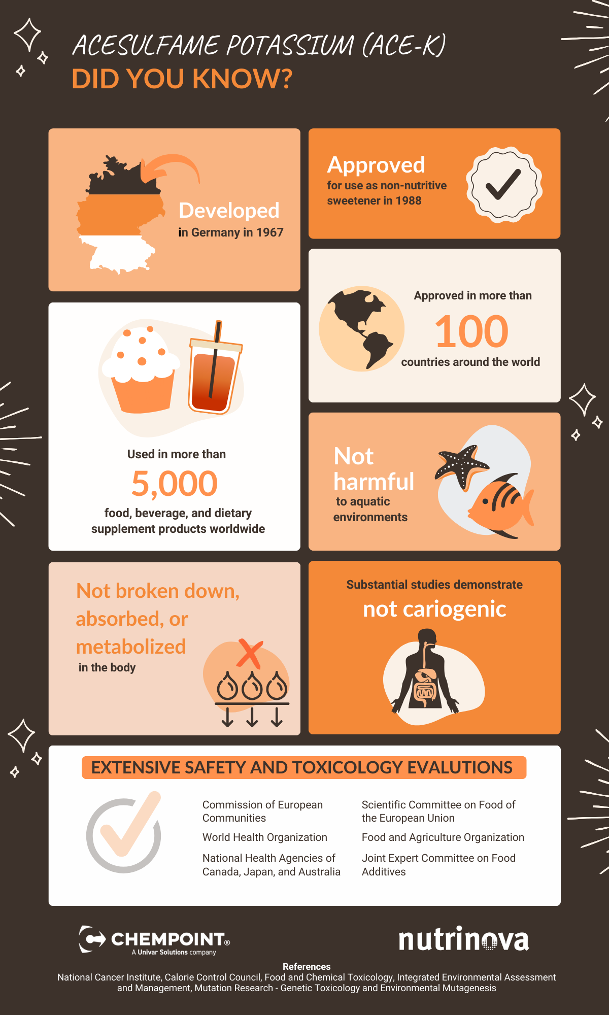 Back to the main question: Is Ace-K safe to consume? Click on the infographic below to learn more about Ace-K and its safety for humans and the environment.
