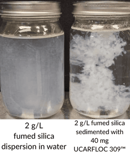 For sedimentation, POLYOX™ and UCARFLOC™ can be mixed directly into turbid wastewater as a powder to initiate settling or can be mixed into water to create a stock solution, which can then be added to the wastewater.