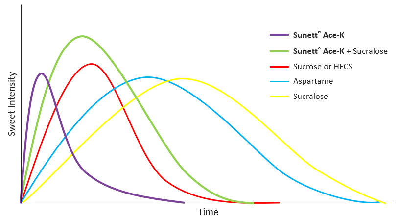Sunett® Acesulfamo de Potasio (Ace-K) es un edulcorante no nutritivo de alta intensidad de Celanese. Es unas 200 veces más dulce que el azúcar, con excelentes características de mezcla y sinergia con otros edulcorantes. Su rápida aparición del dulzor sin un regusto persistente lo hace ideal para crear un perfil de sabor similar al del azúcar.
