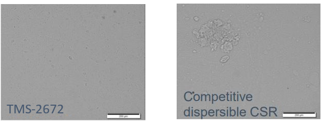 PARALOID™ TMS-2672 Impact Modifier offers high-quality dispersion capabilities compared to a competitive CSR additive shown below.