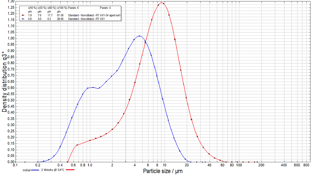 Particle Size Distribution after Storage for 2-weeks at 54°C