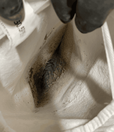 Bag filter retentate after treatment with 1 ppm UCARFLOC 309™
