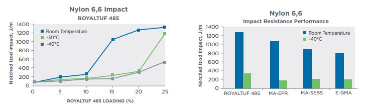 - ROYALTUF™ 527 is a maleic anhydride grafted EPDM modifier that offers high chemical resistance for potential EV applications such as the battery enclosures. Additionally, this material provides lightweight benefits for automotive components that utilize composites for structural or body panel applications while maintaing a high strength-to-weight balance.