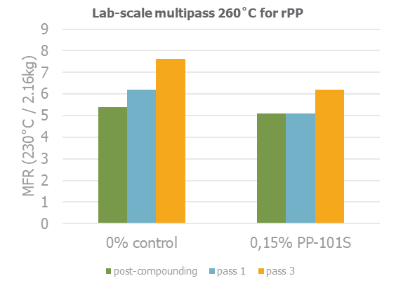 As a liquid grade, it helps restabilize postconsumer polypropylene (PP) and high-density polyethylene (HDPE) rigid packaging streams.