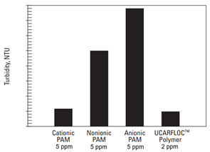During the first steps of papermaking, pulp slurries are created, sent into a head box, and dispersed onto machine wires to begin the drying process and form a paper web. In this last step, approximately 60% of the water in the paper slurry must be removed, and retention aids play a significant role in determining paper quality and manufacturing efficiency. UCARFLOC™ is a line of high-viscosity polyethylene oxide retention aids developed for the papermaking industry that work at relatively low concentrations to provide the following benefits: