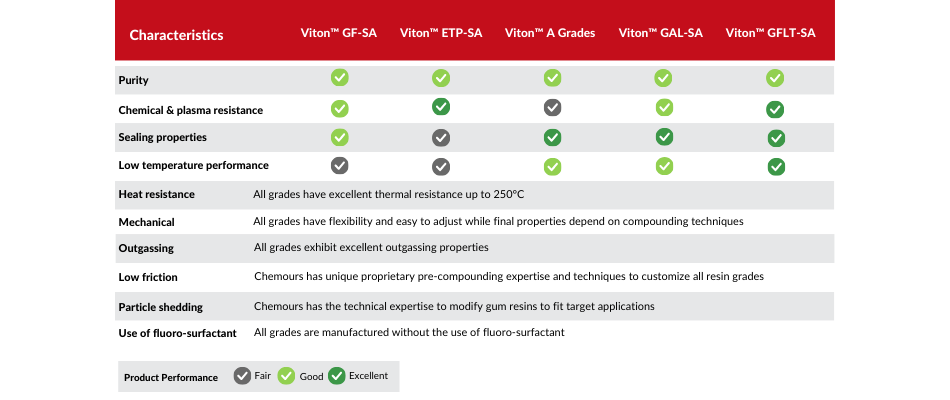 Chemours Viton™ Fluoroelastomers play a pivotal role in enhancing the efficiency and reliability of semiconductor manufacturers operations. One key advantage of Viton™ Fluoroelastomers in semiconductor manufacturing is their resistance to a wide range of aggressive chemicals commonly used in the industry. The harsh chemical environments inherent in semiconductor wafer fabrication processes, such as etching, deposition, and cleaning, demand  materials that can withstand prolonged exposure without compromising their structural integrity. Viton™ Fluoroelastomers excel in this regard, providing a reliable barrier against corrosive substances, thereby extending the lifespan of critical components and reducing maintenance requirements.