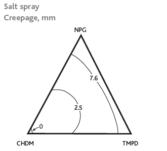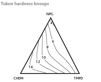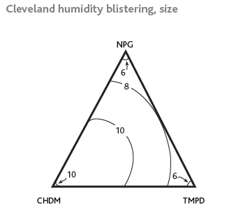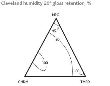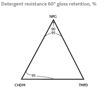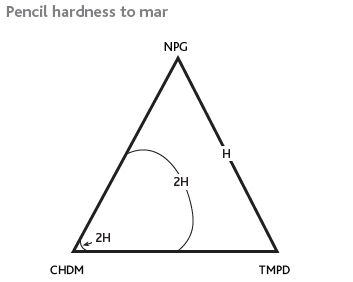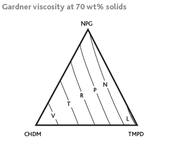 To better understand how glycol structure impacts resin and coating behavior, Eastman conducted a statistically designed triangle glycol study evaluating the three aliphatic and cycloaliphatic glycols commonly used in saturated polyester coatings, listed below.